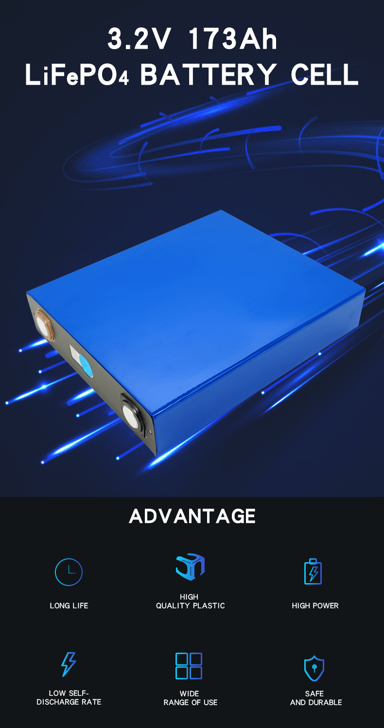 Sel bateri LiFePO4 3.2V 173Ah yang diperakui UL ini mempunyai kelebihan berikut:
