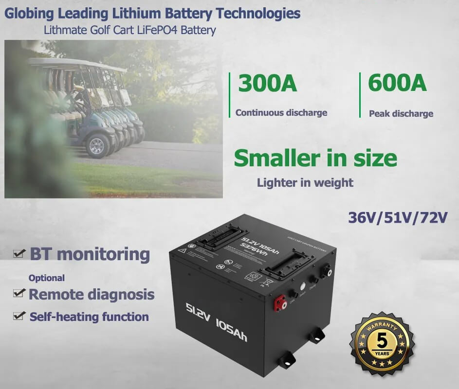 【LCD Monitor Bateri Pintar】Bateri kereta golf litium ALL IN ONE menawarkan pecutan dan prestasi yang mantap, membolehkan pengguna untuk menakluki rupa bumi yang mencabar dan memanjangkan jarak golf mereka sehingga 50 batu dengan sekali cas.