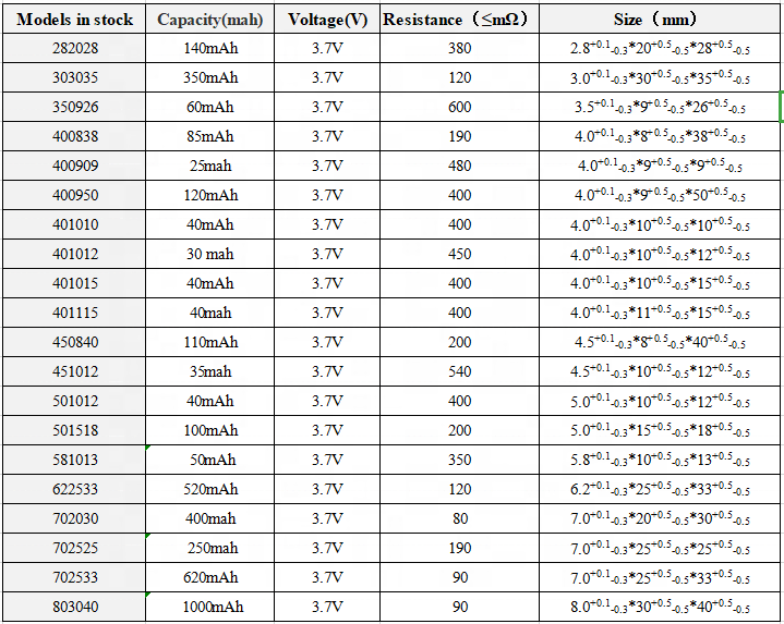 Nama Produk | 581013 3.7V 50mAh polimer litium bateri | Catatan | |