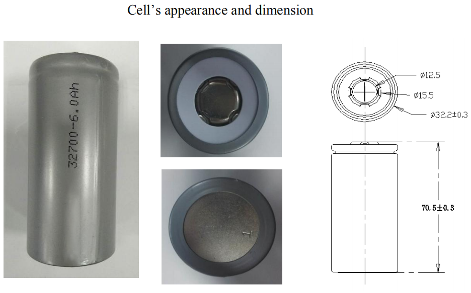Cell SIze | Diameter: 32.2 ± 0.3mm, Maksimum 32.5mm | Tinggi: 70.5 ± 0.3mm, Maks. 70.8mm |