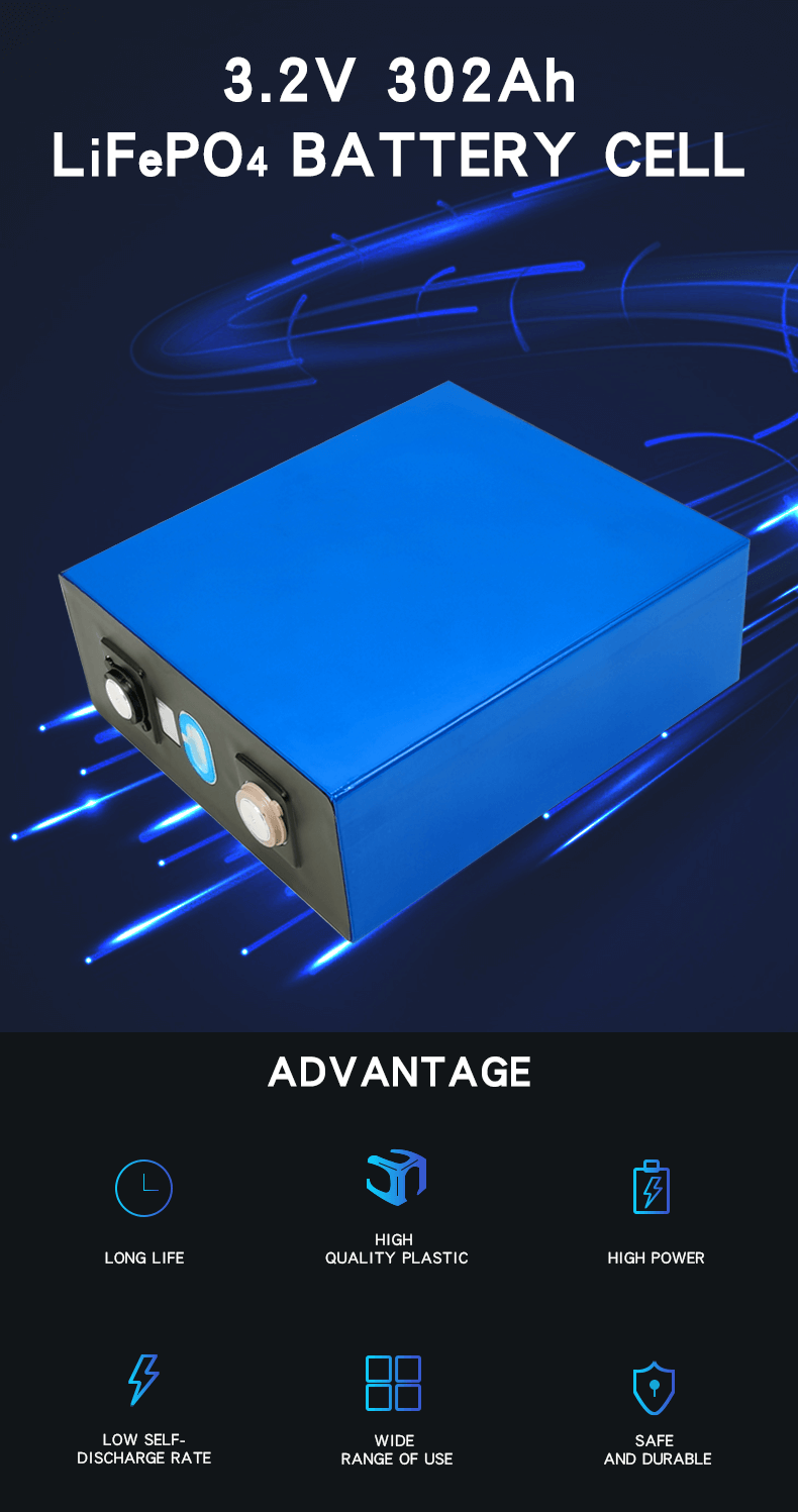 Sel bateri LiFePO4 3.2V 302Ah yang diperakui UL ini mempunyai kelebihan berikut: