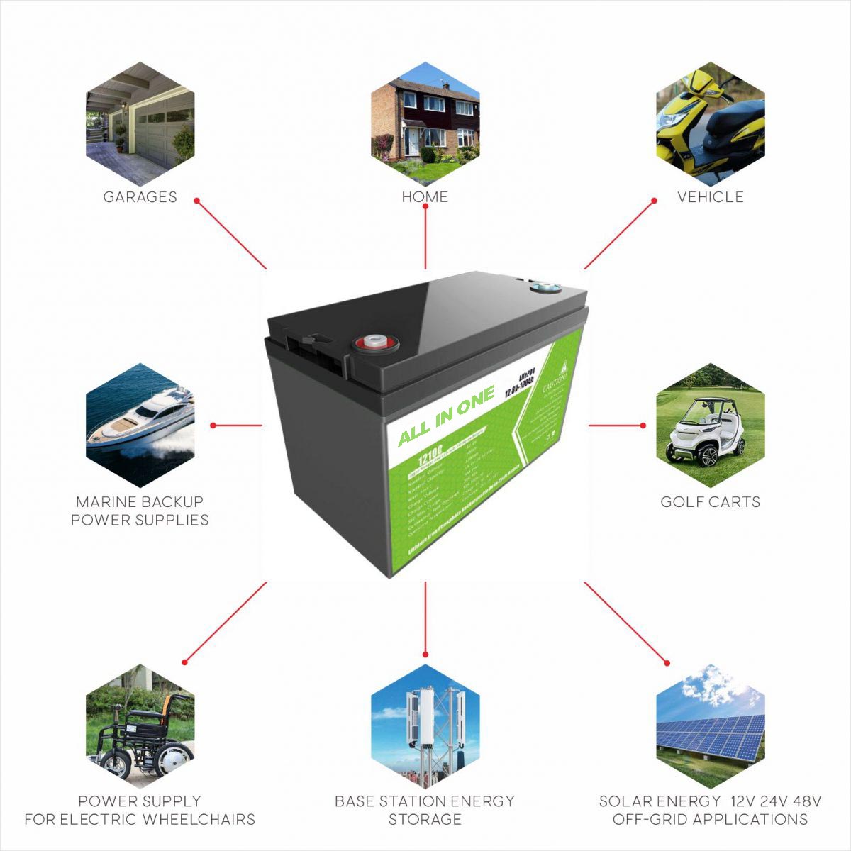 E-car, E-bus, Golf troller / car, E-bike, Scooter, RV, AGV, Marine, Tourist car, Caravan, Wheel chair, E-truck, E-sweeper, Floor cleaner, E-walker dll.